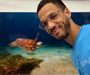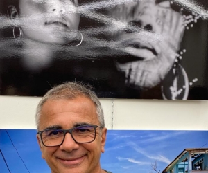 Jerome Nadessin devant sa photo à l'expo "KREYOL"