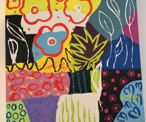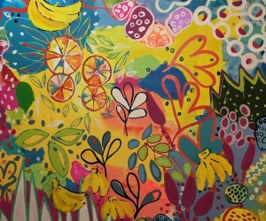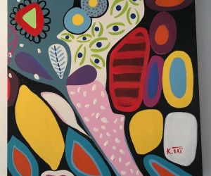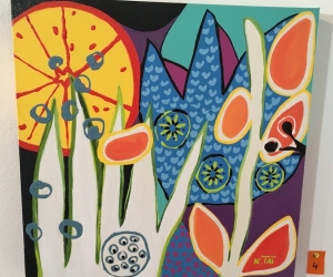 Karine Tailame , peint les couleurs de son ile, la Martinique. Son oeuvre est tout entière tournée vers la joie de vivre et la sensibilisation environnementale.