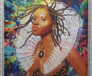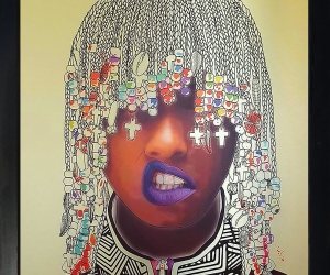 So Aguessy Raboteur was born in December 5th 1988 in Pointe-à-Pitre, graduated from the School of Fine Arts in the city of Le Mans in 2013 and the city of Le Havre in 2015. During these 5 years, she studied Art, Graphic Design, and Space Design. Today, she defines her art as Graphic'art, which is the union of digital techniques, paintings and illustrations. Born from a Franco-Beninese mother and a Guadeloupean father, her problematics and creative axes draw their sources directly from the history of her origins. She spent her childhood as a nomad between several cities in France and Guadeloupe. At the end of her studies in 2016, she moved to Guadeloupe and began to present her works to the public. The same year, she won an artist's price to exhibit at the Pool Art Fair Martinique. In 2018 she was selected by Krystel Ann Contemporary Art Agency and The Guadeloupe Region to participate in the first part of the exhibition called “Eclats d'îles” in Paris. During this exhibition, she meets Lilian Thuram and his wife Kareen Giuock who acquire one of her works. The same year, she received the 2018’s Youth Award in the Culture category from the City of Petit-Bourg, in Guadeloupe, which is her home town now. Through her work, she seeks to question her racialized cultural heritage, at the crossroads of Africa, Europe and Guadeloupe, her native island. Digital art, painting and illustration are the mediums she uses to create her works. A juxtaposition of techniques representing the interconnections of multicultural heritage.