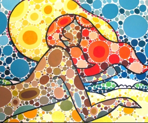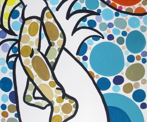 For the past 15 years Céline Chat has travelled the world surfing and painting, she has discovered many countries such Madagascar, Mexico, Australia and Indonesia to name a few. On her travels the artist discovered a whole host of new and exciting cultures along with a bohemian lifestyle. This has had a huge influence on her artwork as well as her personal life. The artists paintings and sculptures clearly reflect her sentiments on the world. Looking at the diversity of our society, she manages to celebrate its beauty through her joyful and colourful artwork. After many years of exploring the artist discovered the beautiful island of Guadeloupe, where she now calls home. She found the serenity and inspiration needed for the evolution of her work.