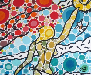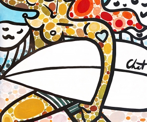 Pendant 15 ans, Céline Chat voyage autour du monde pour surfer et peindre. De Madagascar au Mexique, du Maroc à l'île Maurice, de l'Indonésie à l'Australie, elle y découvre les cultures et le style de vie bohème qui nourriront et marqueront pour toujours son travail et sa vie personnelle. Ces peintures, sculptures et objets peints expriment ces sentiments, explorent la pluralité de notre société et célèbrent son esthétisme dans un univers joyeux et riche en couleurs. Céline a finalement choisi de s’installer en Guadeloupe après avoir découvert la beauté de notre île. Elle y a trouvé la sérénité et l’inspiration nécessaire à l’evolution de son travail.