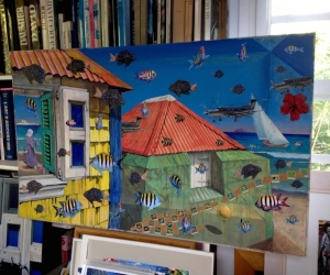 Living in ST BARTHELEMY for more than 25 years Antoine Heckly was immersed in an art-filled universe from an early age, as his father was an architect and his mother a painter. Sensualist, hedonist, eclectic, and passionate, Antoine Heckly is a self-taught artist who love to paint his beautiful island with a touch of surrealism.