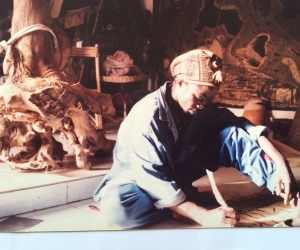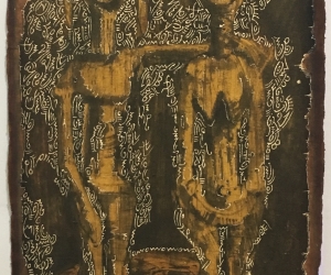 Abdou OUOLOGUEM is an international artist from the DOGON country in MALI. Artistic manager of the famous PETER BROOKS (legendary theater producer) he travelled around the world for 13 years before coming back to BAMAKO to focus on his painting. He is very known for his skill in the old african tradition in painting and kniting.